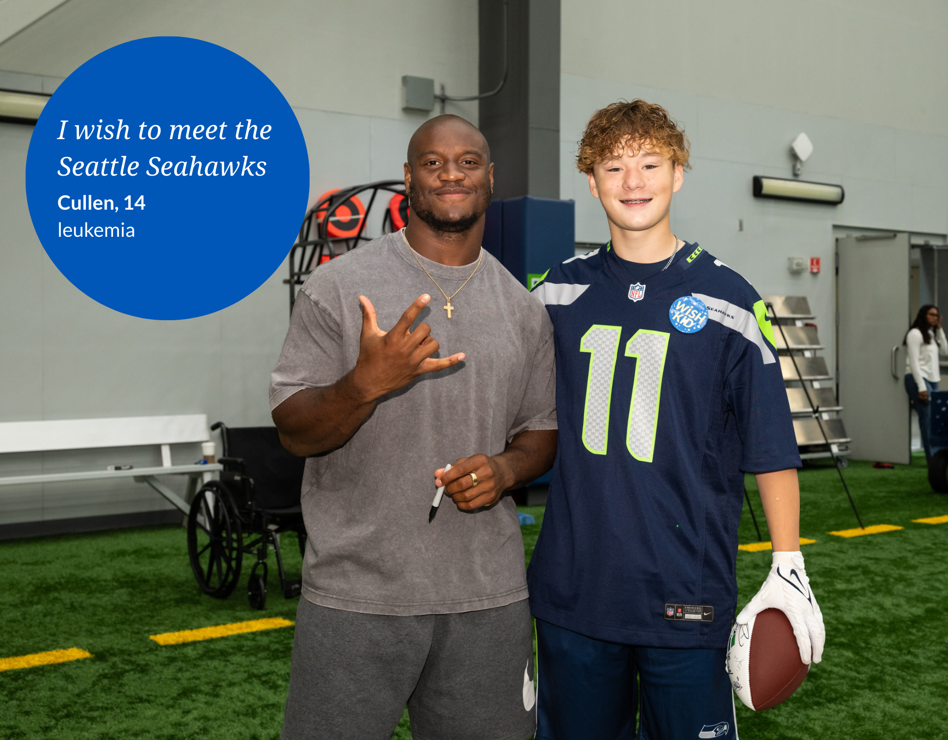 For the first time in over 30 years of granting wishes—including two this fall—the Seahawks named Make-A-Wish a Spirit of 12 partner, joining 11 other nonprofits in a powerful season of giving. Our volunteers fundraised at Training Camp and on gameday through a Seahawks 50/50 Raffle, where 50% of proceeds will be distributed evenly amidst partners. At the pre-season game vs. the Chiefs, Make-A-Wish volunteers helped set a pre-season record jackpot of $57,530!